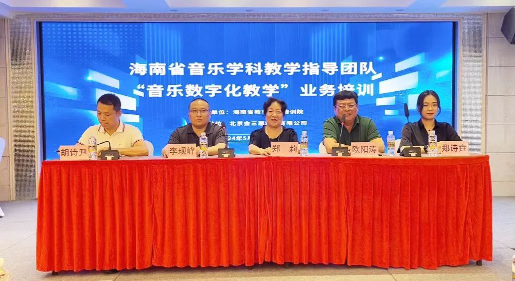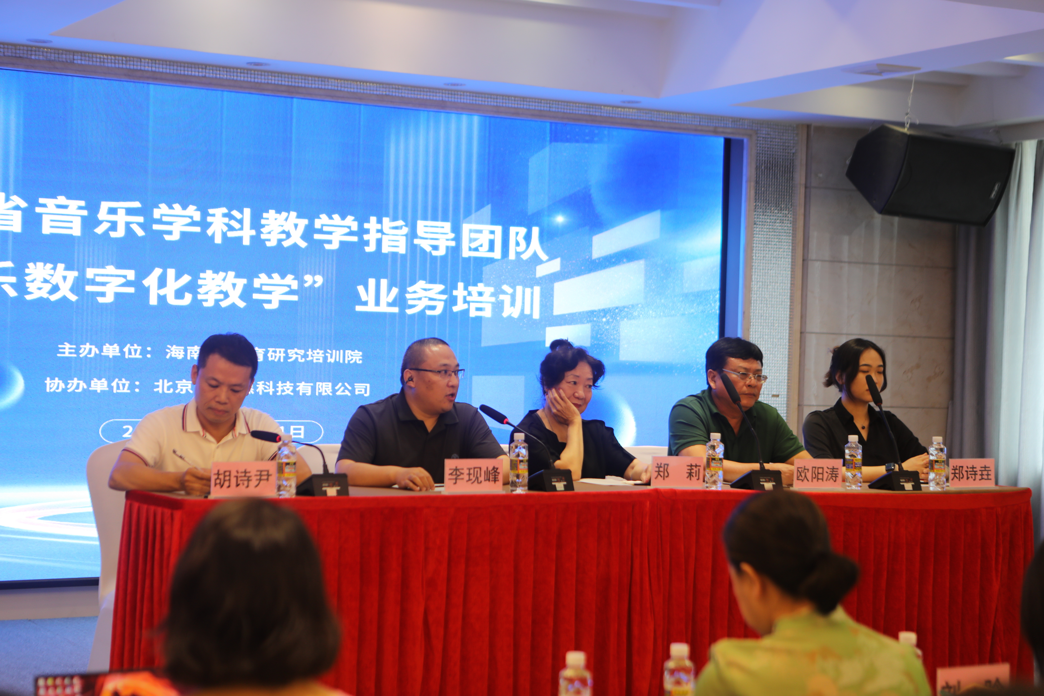 海南省中小學音樂教研員歐陽濤,首都師范大學音樂學院教授、博導、基礎音樂教育課程改革專家鄭莉,北京金三惠總經理李現(xiàn)峰等領導和專家出席,瓊海市教育研究培訓中心胡詩尹主持培訓會。