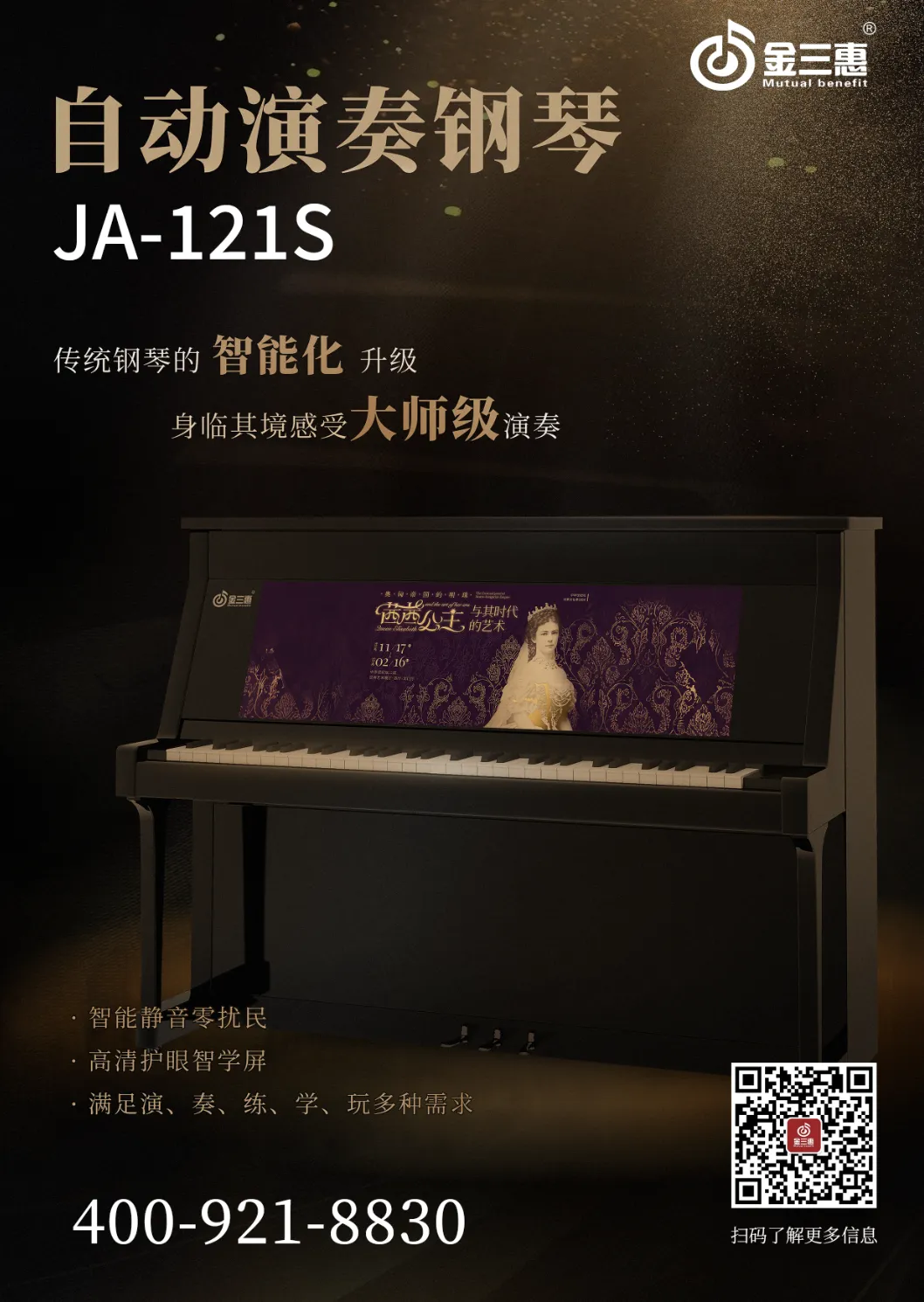 在中華世紀壇“奧匈帝國的明珠——茜茜公主與其時代的藝術”展覽上,一架正在自動演奏的鋼琴吸引了眾人的目光,這是來自北京金三惠的自動演奏鋼琴JA-121S,它是傳統鋼琴的智能化升級,讓在場的每個人都身臨其境的感受到了大師級演奏。