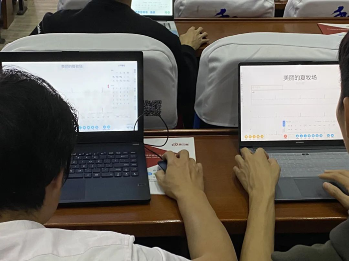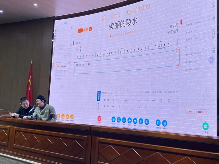 老師們跟隨指導仔細學習每一步操作,在屏幕上打出一個個音符,從生疏到熟練,這種實操教學讓老師們更好地掌握了軟件的操作技巧,以便融入日常教學。