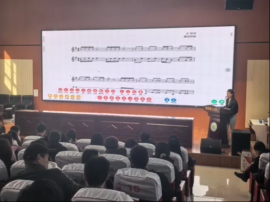 李娜老師深入淺出得講解了數字音樂教學軟件在唱歌課上的應用,將唱歌課與數字化工具深度融合,為老師們帶來了一系列實用的且有操作性的教學方法。李娜老師著重展示了如何借助軟件的電子課件、AI教唱、曲譜編輯等功能與學生進行交互式教學,激發學生的學習興趣,有效提升課堂效率。