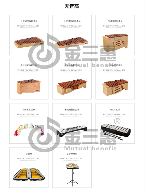 金三惠奧爾夫打擊樂器,秉承著易學、易用、易優的產品理念,所有的木質樂器均采用櫸木的材質。硬度和質感更佳、不僅耐用,而且可以讓木響類樂器發聲準確、清脆、均勻。所有的樂器的噴涂工藝,全面采用綠色環保漆,基本做到無色、無味。