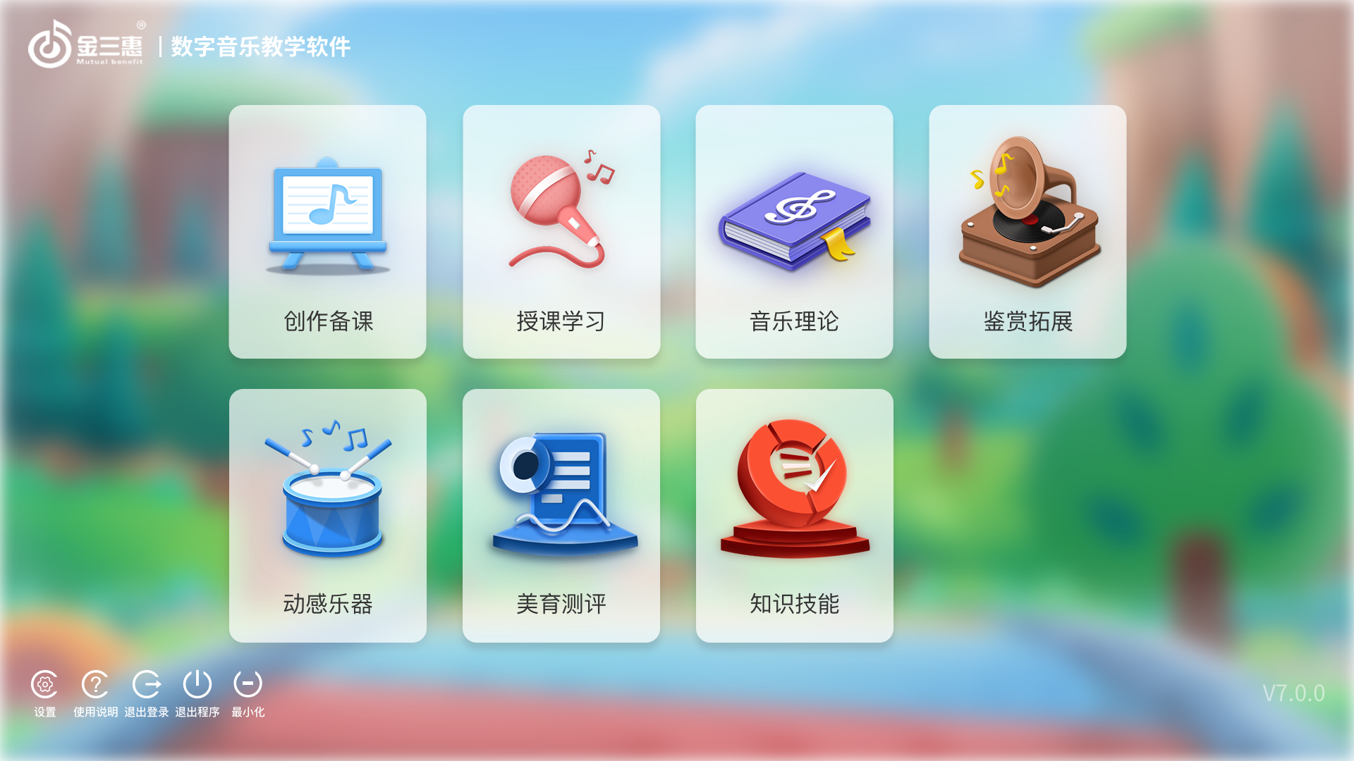 包含創作備課、授課學習、音樂理論、鑒賞拓展、動感樂器、美育測評(可以配置)和知識拓展七大功能模塊。