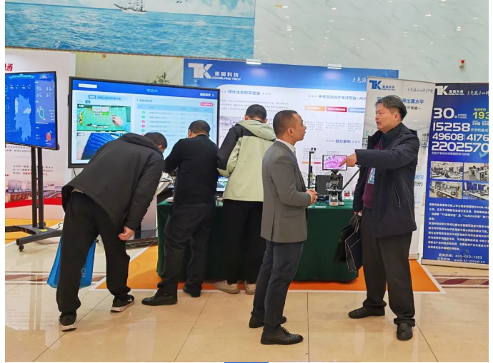 在本次交流會上,童園科技攜中考實驗操作考評系統與AI評分系統精彩亮相。工作人員于現場進行全方位演示,從嚴謹的考務安排,到規范的考試流程,再到精準的考試評分,完整展現系統運行的全流程。