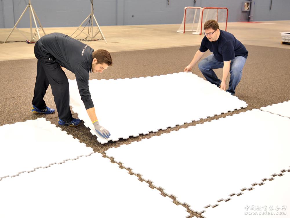 北京大倪仿真冰冰場安裝: 滑冰板可以被安防在任何堅固表面或其他平面。按照安裝說明,在對地面進行簡單處理和鋪設保護膜后將冰板平鋪到地面上,無縫結合即可。拆分也是同樣。面板的無縫接合是通過插槽的方式達成的。邊緣面板則可以同護欄相互契合。當所有的面板都被安裝好時,您擁有了一個完美的滑冰場。