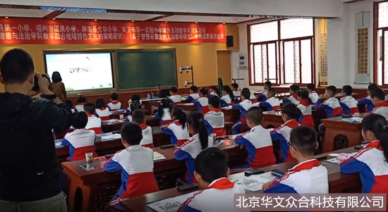 本次活動的形式,是以遠(yuǎn)程互動的教學(xué)模式,在四個會場同時開展,主會場在寧德市古田縣第一小學(xué),分會場在福州市溫泉小學(xué),寧德市屏南縣光華小學(xué),寧德市古田一小松臺校區(qū)。12位來自四所學(xué)校的教師精英在主會場古田縣第一小學(xué)展示了研討課,其中6位在古田縣第一小學(xué)書法室上課,這間書法室則是由華文眾合為學(xué)校定制的智慧書法教室。