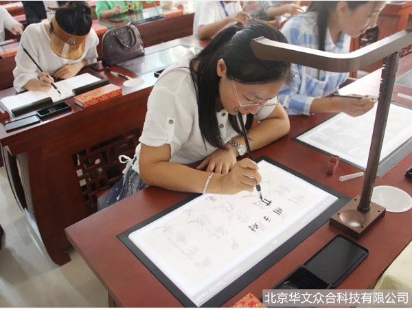 硬件方面,華文眾合歷時(shí)四年成功研制出交互式數(shù)字臨摹臺(tái),解決了書(shū)法臨摹方面的難題,在臨摹臺(tái)上鋪上宣紙就可以用毛筆、墨汁高清臨摹任意字帖和歷代書(shū)法家真跡,既降低了書(shū)法學(xué)習(xí)門(mén)檻,又可以幫助學(xué)生建立書(shū)法學(xué)習(xí)的自信心和自豪感。