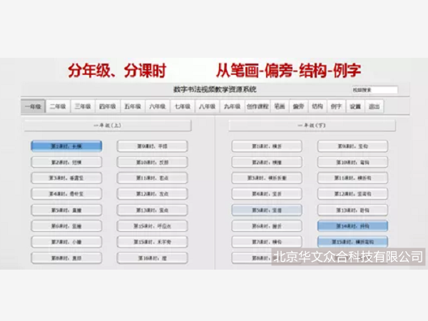 號(hào))文件開(kāi)發(fā)了智能課程。該課程從一到九年級(jí)分課時(shí)安排,從筆畫(huà)—偏旁—結(jié)構(gòu)—例字循序漸進(jìn)學(xué)習(xí)。