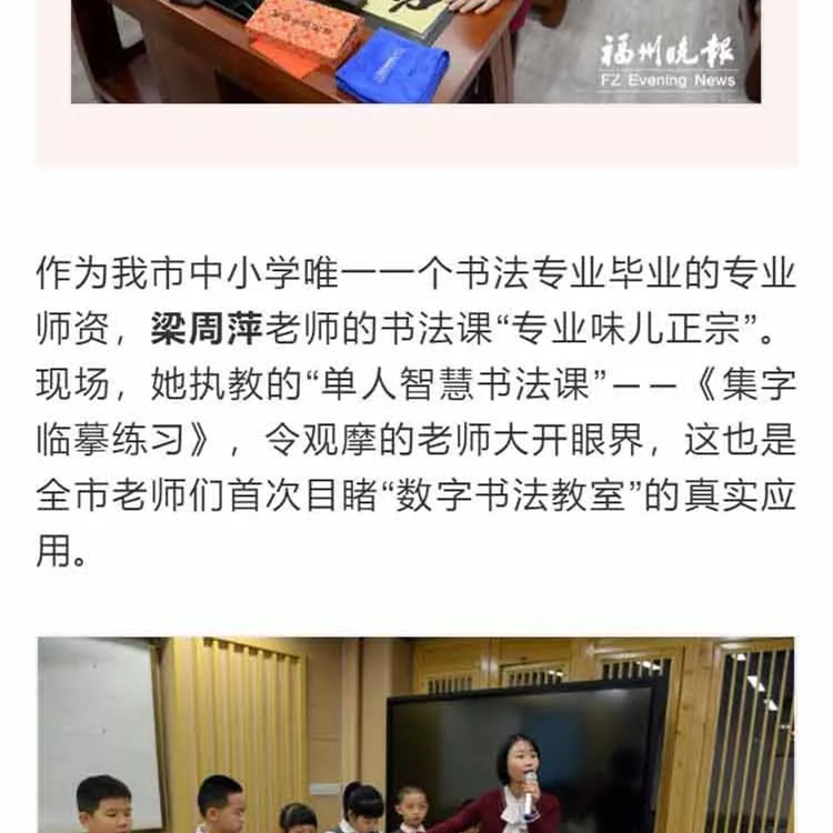華文眾合智慧書法教室落戶福州教育學院附屬第二小學,近日獲《福州晚報》特別報道,原文如下: