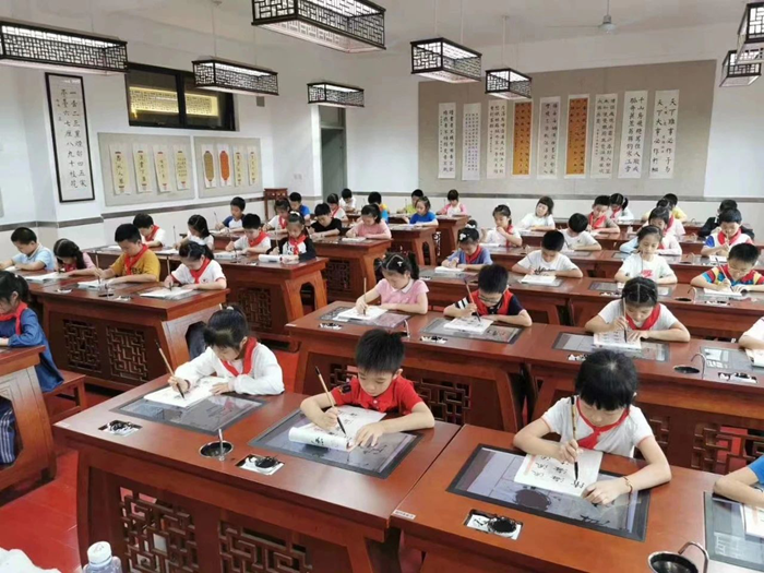 為了給孩子們提供更優質、更全面的教育,上海市青浦區御瀾灣學校在2017年引進華文眾合智慧書法教室。