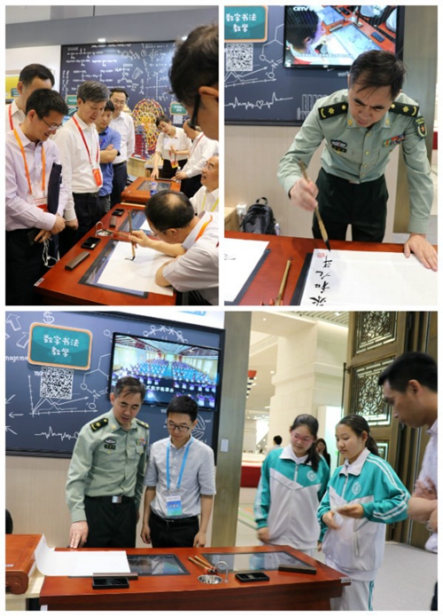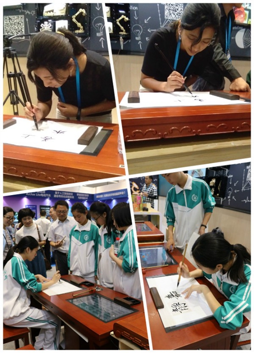 5月19日,華文眾合數字書法教室出展第一天就榮登北京科技周官方微信報道榜單。展出期間,華文眾合數字書法教室展位吸引了眾多慕名而來的參觀體驗者,同時也受到了家長朋友、展商朋友、軍人、外國友人、退休老人、學生、小朋友等各職業各年齡段體驗者的一致好評。小朋友非常樂意坐好靜下心來寫一幅自己滿意的書法作品,這一切緣于“數字書法”的魅力。