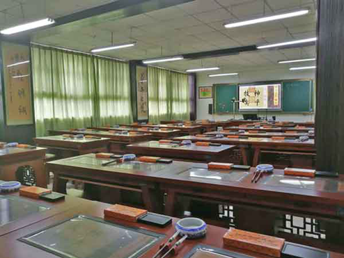 華文眾合數(shù)字書法教室使用傳統(tǒng)的筆、墨、紙、氈來進行教和學(xué),每位學(xué)生都有一臺交互式數(shù)字書法臨摹臺,通過臨摹臺可以清晰看到教師從整體到細節(jié)的書寫示范,通過臨摹臺學(xué)生可以播放書法家的書寫視頻,講解書法的執(zhí)筆運筆,分析漢字的字形結(jié)構(gòu)與篇章布局,幫助學(xué)生理解書法的奧妙。德昌縣第二完全小學(xué)的學(xué)生們可以通過臨摹臺查閱臨摹古代書法大家的真跡作品,通過趣味動畫視頻了解書法知識和典故,在交互式數(shù)字臨摹臺上觀看名家書寫示范視頻,使用邊看邊練、六步練習(xí)法等多種方式進行學(xué)習(xí)。