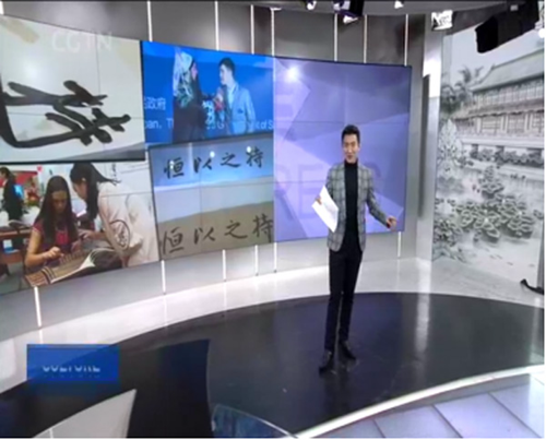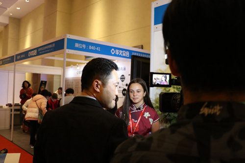 CGTN首席記者孟慶生大會現場針對華文眾合智慧書法教室進行采訪