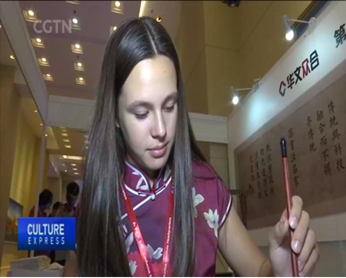 CGTN報道孔院大會中的明星產品,華文眾合智慧書法教室是其中之一