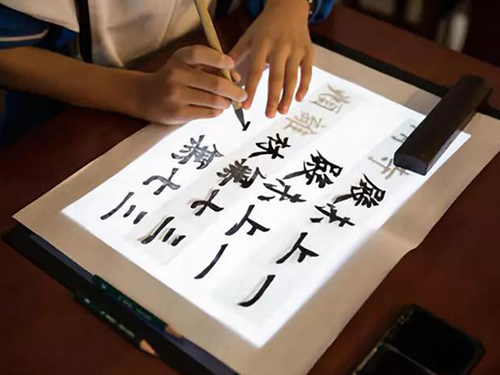 本著弘揚傳統文化的初心,華文眾合自主研發了多點觸控、護眼、抗壓、耐磨、防水的交互式數字臨摹臺。在交互式數字臨摹臺上,學生可以使用真實的筆墨紙進行學習,避免水寫、電子模擬等書寫體驗對造成的不良影響。
