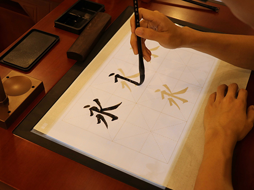 本著弘揚(yáng)傳統(tǒng)文化的初心,華文眾合提出“傳統(tǒng)與科技融合,而不摒棄傳統(tǒng)”的理念,堅(jiān)持讓學(xué)生使用真實(shí)的筆墨紙學(xué)習(xí),避免電子模擬、水寫等書寫體驗(yàn)對(duì)學(xué)生造成不良影響,并歷時(shí)4年研發(fā)交互式數(shù)字臨摹臺(tái),將宣紙鋪在臨摹臺(tái)上就可以高清臨摹。針對(duì)中小學(xué)生的成長(zhǎng)特點(diǎn),交互式數(shù)字臨摹臺(tái)還具備護(hù)眼功能,同時(shí)抗壓、耐磨、防水、防震。