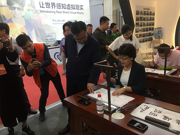 2019年9月17-19日,“首屆寧夏‘互聯網+教育’裝備博覽會”在銀川舉行,華文眾合攜第五代智慧書法教室亮相此次展會。行業內的多位領導蒞臨展位,或參觀指導,或親自體驗,對華文眾合智慧書法教室贊譽有加。