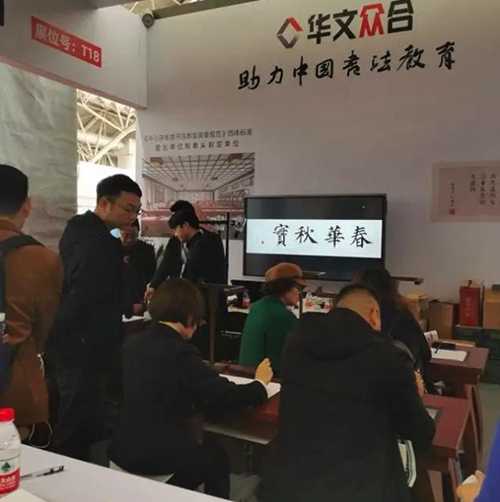11月15日,2019中國未來教育與智慧裝備展示會在南京國際展覽中心隆重開幕。華文眾合攜智慧書法教室參展,吸引大批觀眾駐足體驗。