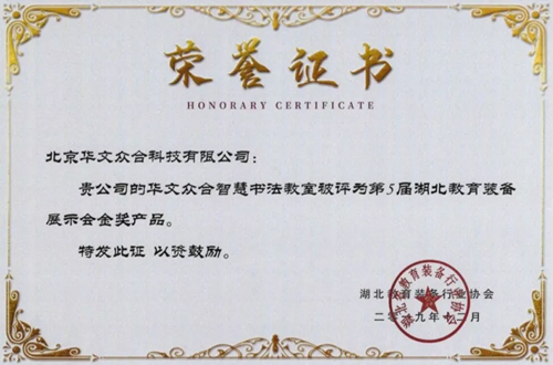 12月初,第5屆湖北教育裝備展示會金獎產品評選結果公示, 經過現場展示、專家現場評審等環節,華文眾合智慧書法教室榮獲金獎。近日,證書新鮮出爐!