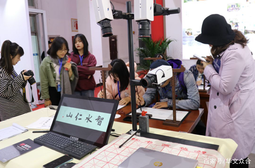 另外,華文眾合展出的第六代智慧書法教室推出三大亮點:無“電”終端技術、場景式網絡課堂和筆尖跟蹤技術。