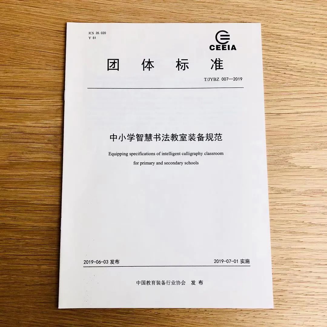 圖為:《中小學智慧書法教室裝備規范》團體標準