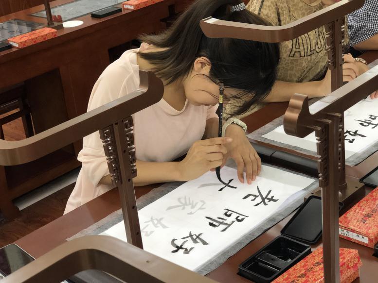 以傳統(tǒng)為基礎(chǔ),華文眾合智慧書(shū)法教室秉承“傳統(tǒng)與科技融合,而不摒棄傳統(tǒng)”的理念,采用傳統(tǒng)的毛筆、墨汁和宣紙進(jìn)行教和學(xué),避免水寫(xiě)、電子模擬等書(shū)寫(xiě)體驗(yàn)給學(xué)生造成不良影響。學(xué)生從最初學(xué)、練書(shū)法開(kāi)始,從始至終都使用筆墨紙,養(yǎng)成一致的筆觸感,脫離平常練習(xí)的教室也能使用筆墨紙寫(xiě)出漂亮的毛筆字。