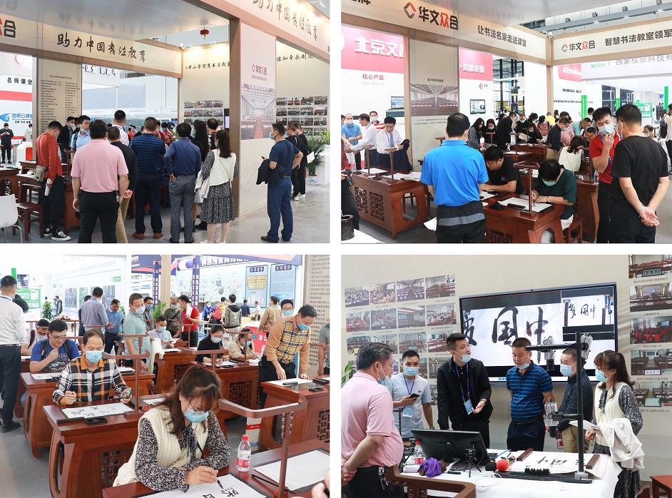 華文眾合聚焦智慧書法教育,經過多年來的行業建設發展,案例覆蓋全國32個地區,已成功為1000多所中小學、100多所大學打造智慧書法教室,惠及學生逾百萬人,深得行業認可。在本屆廣西教育裝備展示會覽會上,華文眾合運用行業新興技術,通過交互式數字臨摹臺,多維互動系統、“2+1”教學模式等打造的智慧化書法教室體驗區,為參觀者們帶來不一樣的新奇體驗。開館當日,華文眾合展位(5號廳5A07)人氣爆滿,吸引了眾多嘉賓蒞臨參觀交流。
