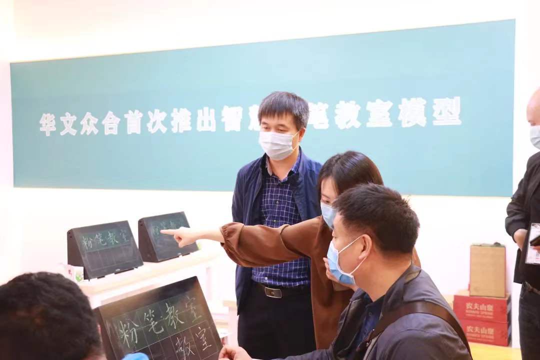 中國教育裝備行業協會副會長夏國明參觀體驗華文眾合智慧粉筆教室
