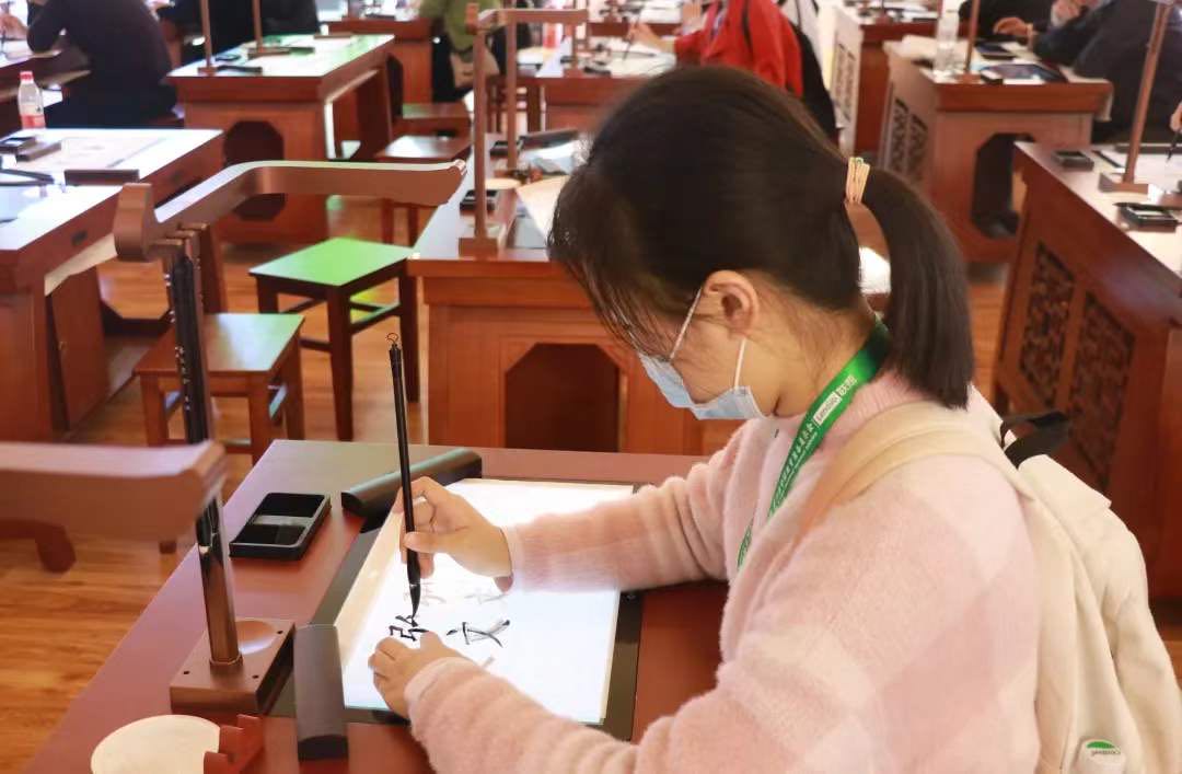 教育部關心下一代工作委員會常務副主任、中國教育裝備行業協會會長王富體驗華文眾合第七代智慧書法教室