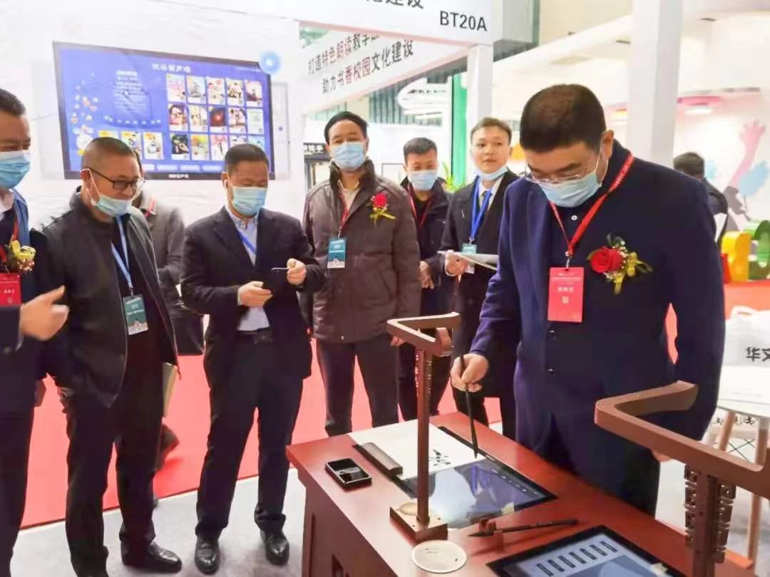華文眾合最新推出的第七代智慧書法教室,首次在西部地區(qū)亮相,寧夏回族自治區(qū)財(cái)政廳馬處長及寧夏教育裝備行業(yè)協(xié)會(huì)會(huì)長黃樺親臨華文眾合展會(huì)參觀并與華文眾合副總裁陳方義進(jìn)行了親切的指導(dǎo)交流,寧夏教育裝備和校園風(fēng)險(xiǎn)管理中心主任侯慶偉也前來體驗(yàn)了首次亮相寧夏的第七代智慧書法教室。不少前來參展的朋友表示“早已聽說過華文眾合第七代智慧書法教室的新概念,這次華文眾合終于來到寧夏銀川讓我們一睹新技術(shù)新風(fēng)采!