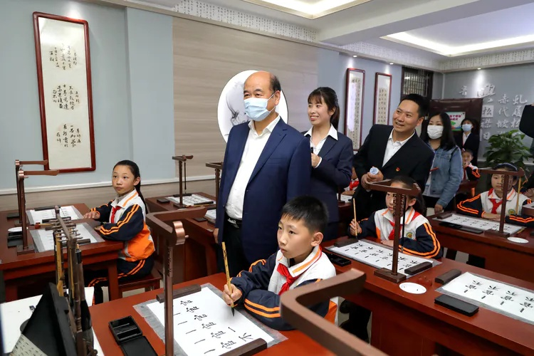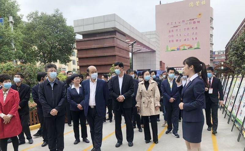 4月22日至23日,陜西省中小學(xué)課后服務(wù)工作現(xiàn)場(chǎng)會(huì)在咸陽(yáng)召開(kāi),省市教育部門負(fù)責(zé)人200余人現(xiàn)場(chǎng)觀摩。省教育廳廳長(zhǎng)劉建林一行來(lái)到秦都區(qū)天王學(xué)校,該校校長(zhǎng)劉向媛介紹了學(xué)校課后服務(wù)的開(kāi)展情況,并帶領(lǐng)觀摩團(tuán)成員現(xiàn)場(chǎng)觀看了學(xué)校正在進(jìn)行的課后服務(wù)。