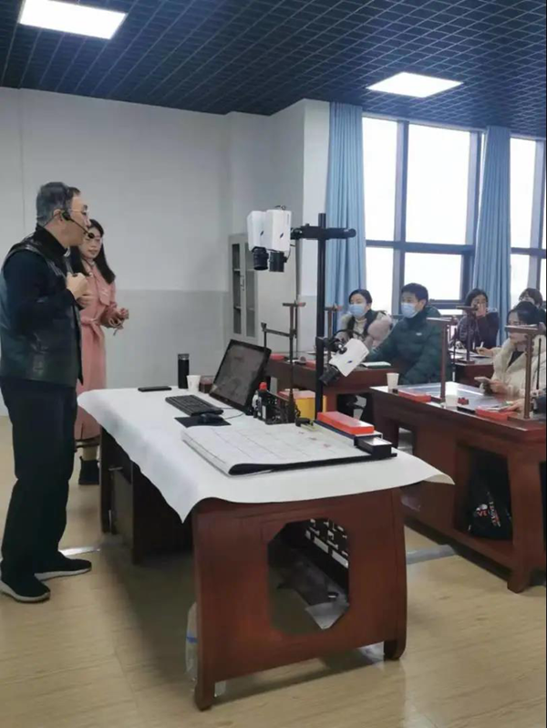 華文眾合培訓(xùn)師前往孝感市為七所學(xué)校的老師們講解華文眾合智慧書法教室的使用方法,并與老師們交流書法教學(xué)上的心得體會(huì)。