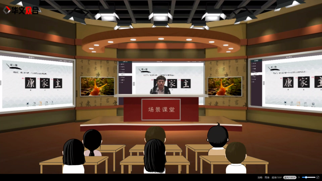 2、場景式網(wǎng)絡(luò)課堂。通過場景技術(shù)讓網(wǎng)絡(luò)課堂達(dá)到“名師面對面”以及不同地域?qū)W生“天涯若同堂”的效果。