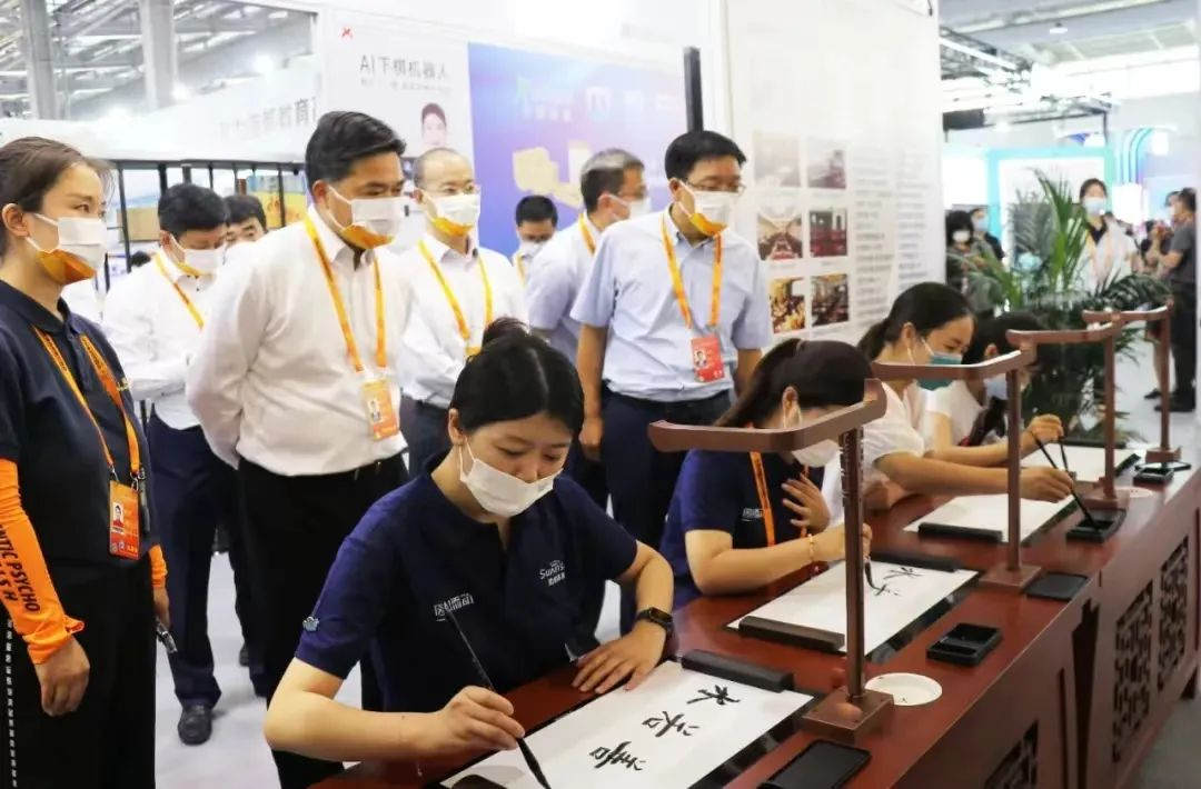 2022中國國際貿(mào)易服務(wù)交易會上,央視記者體驗第8代智慧書法教育AI評價功能