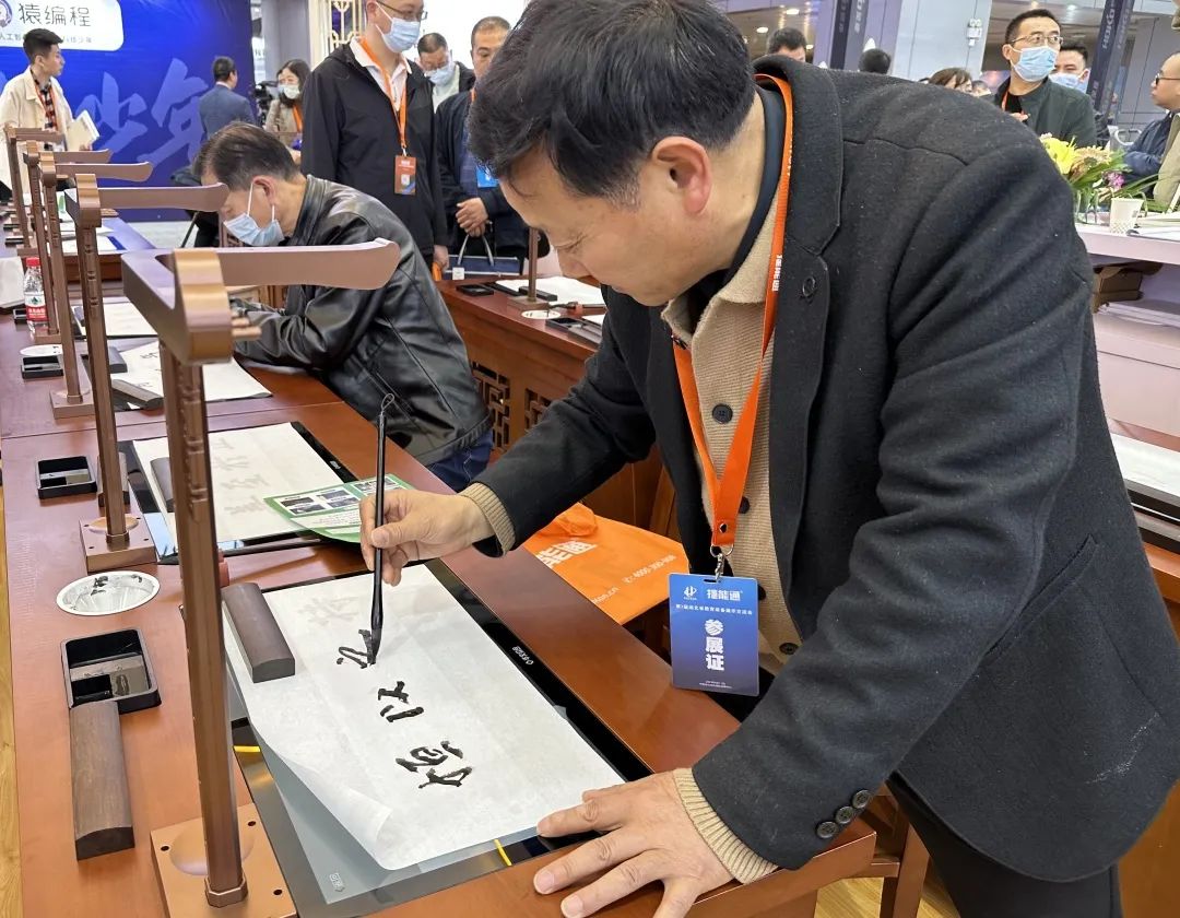 華文眾合第8代智慧書法教室共具備兩個新亮點,一個是“Ai評價”、一個是“筆尖跟蹤”�!癆i評價”指的是華文眾合智慧書法教學系統可以將學生寫好的毛筆字拍照收取上來,基于人工智能技術對學生書法練習進行智能化評價、糾錯和建議,讓“Ai老師”隨時隨地輔助學生進行書法學習;“筆尖跟蹤”指的是通過人工智能技術來“跟蹤”老師的筆尖,借助交互式數字臨摹臺,學生能夠更清楚、精準地觀看老師起筆、行筆、收筆,達到一對一的書法教學效果,對于具備示范能力的老師,筆尖跟蹤技術可以精準細微地輔助老師進行教學。除此之外,華文眾合的名家示范系統中包含豐富的示范視頻資源,可以解決書法老師示范難的問題,也能讓學生從小就受到名家的熏陶。華文眾合智慧書法教室不斷研發創新,產品的不斷升級恰恰切合了華文眾合堅定提高學校書法信息化水平、傳承創新傳統文化的初心。