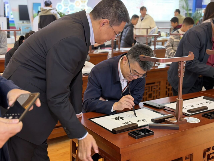展會收官之日,青島城陽外國語小學的師生們走進華文眾合展位,開啟了一場別開生面的智慧書法學習體驗。在講師的耐心引導下,一堂趣味十足的書法小課堂課緩緩展開:從拼字識結構,到握筆姿勢糾正,再AI評測書寫效果,每一個環節都讓孩子們興致盎然�!氨纫槐日l的AI評分最高”的小比拼更點燃了大家的熱情,迫不及待地舉手展示自己的作品。這場沉浸式體驗不僅讓孩子們掌握了基礎書法技巧,更讓他們在輕松有趣的氛圍中感受到中華傳統書法的獨特魅力,悄然在心中種下了熱愛的種子。