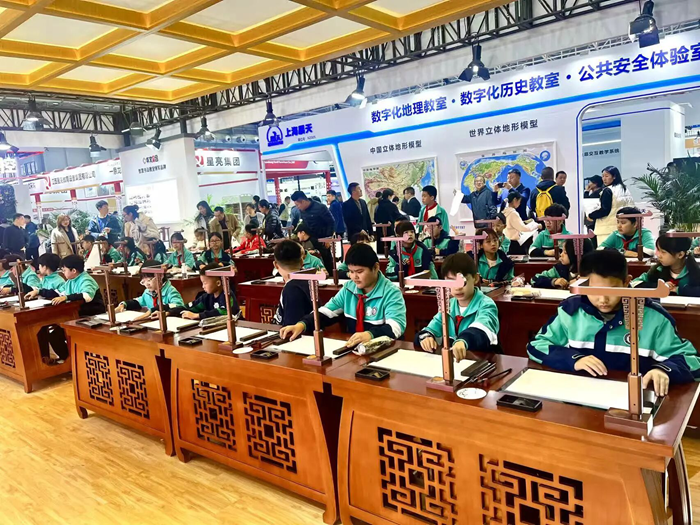 10月24-26日,以“人工智能引領教育裝備高質量發展”為主題的第86屆中國教育裝備展示會在青島世博城國際展覽中心成功舉辦。華文眾合攜經典產品與創新成果重磅亮相,智慧書法教室、智慧粉筆教室盡顯傳統教育與科技融合之美,新產品國內首款中小學具身教育智能機器人華文小奕的發布更是引發全場矚目,成為展會現場一道亮麗的風景線。