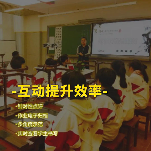 傳統(tǒng)的書法課,教師在講臺(tái)上寫,學(xué)生不能全程看清楚,教師要指導(dǎo)就要滿教室跑,課堂效率很低。通過華文眾合智慧書法教室的多維互動(dòng)系統(tǒng),老師在教師端的示范書寫可多角度呈現(xiàn)到學(xué)生端,老師也可實(shí)時(shí)查看每一位學(xué)生寫字的過程,任意一位學(xué)生的書寫動(dòng)態(tài)都可以同步直播到教師端和大屏,方便老師和其他學(xué)生觀摩和點(diǎn)評(píng)。