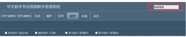 書法視頻資源內(nèi)的視頻是由書法家書寫并配有語(yǔ)音講解和字幕,教師在授課過程中可播放視頻進(jìn)行書寫示范,達(dá)到了書法名家走進(jìn)課堂的效果。華文眾合智慧書法教學(xué)系統(tǒng)“視頻”欄目,根據(jù)年級(jí)、創(chuàng)作課程、筆畫、偏旁、等進(jìn)行分類,同時(shí)支持字體檢索。其中,教師可以在該欄目依據(jù)系統(tǒng)內(nèi)置視頻資源或外部文件資源進(jìn)行創(chuàng)作課程。