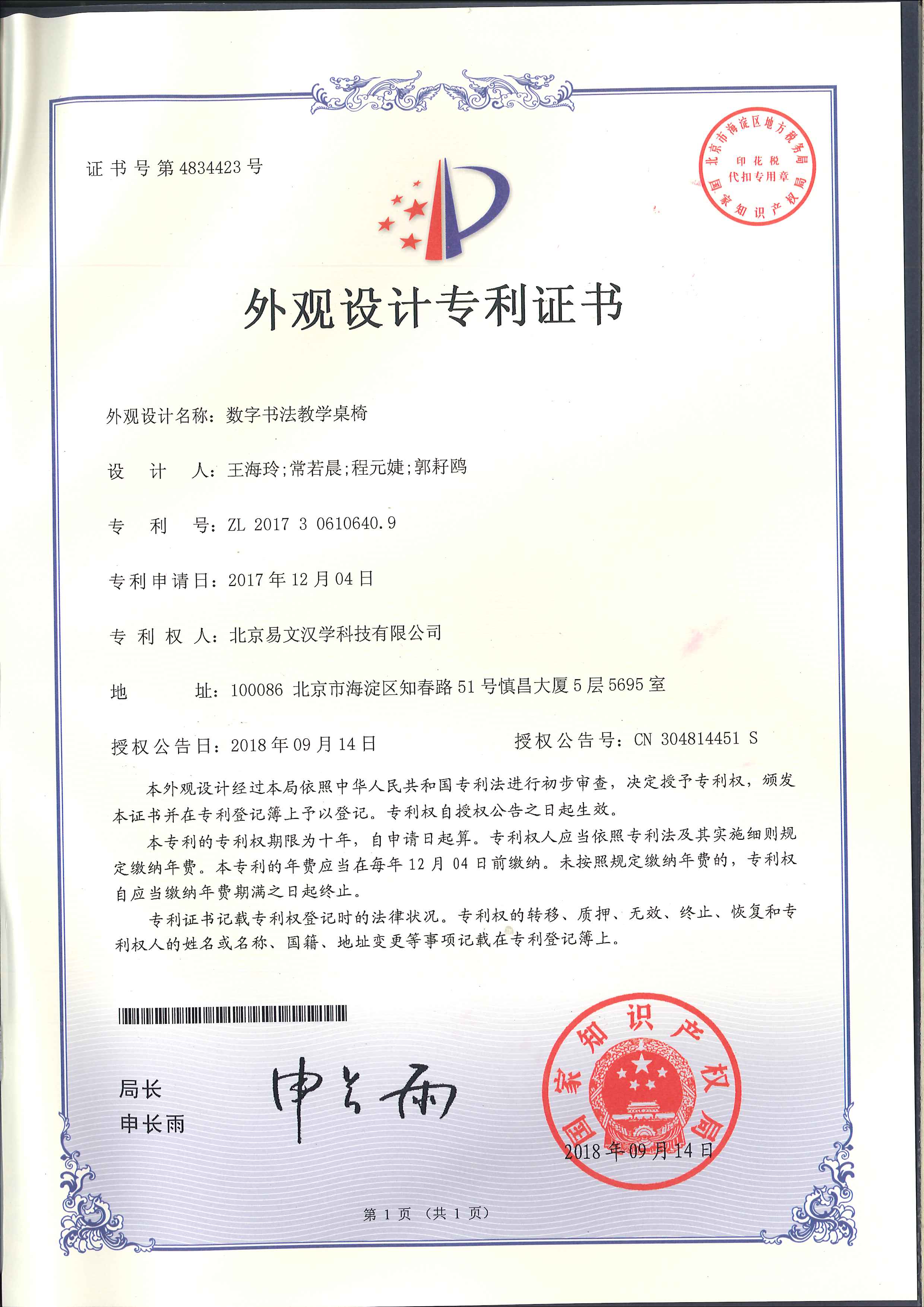 外觀設計專利證書