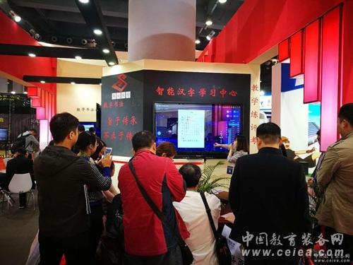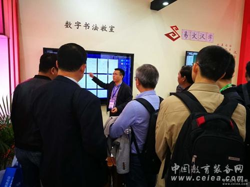易文漢學在本次展會上展示了易知數字書法教學系統、易學漢字智能教學系統、智能漢字學習中心等解決方案,以及專門為課堂書法教學而打造的數字書法教學桌椅,吸引了眾多觀展人群駐足了解。在觀看了產品演示與親身體驗后,觀眾對于上述幾種解決方案均產生了極大的興趣。