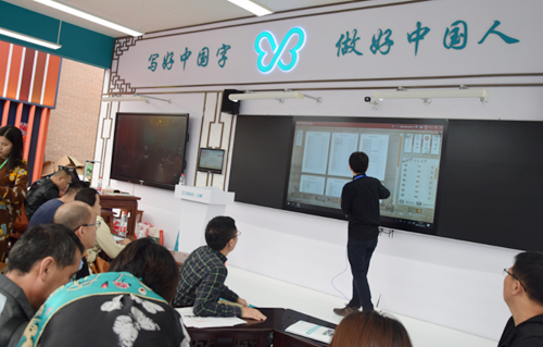 展會現場,易文漢學通過模擬課堂的形式,詳細介紹了硬筆、軟筆書法及漢字教學解決方案如何有效的與課堂授課緊密結合,如何將數字書法教學系統和漢字智能教學系統應用在常態化課堂的教學中。在專業教室里,學生練習測試,教師匯總漢字學習成果,通過數據報告直觀了解學生學情。在日常課堂中,漢字教學資源隨時隨地調用,教師可針對日常教學需要或者學生易錯之處,進行靶向講解,為學生打造全方位的漢字學習空間。