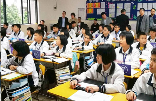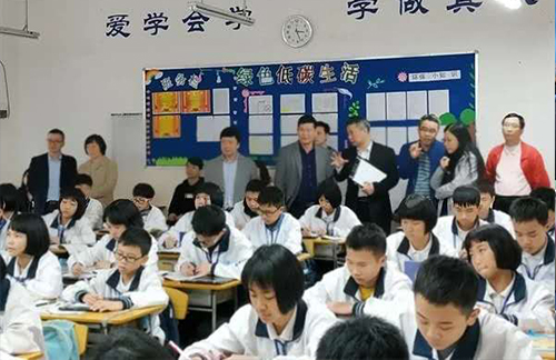 市領導一行首先來到了示范班級進行課堂觀摩,了解光大教育紙筆互動課堂在翁祐中學信息化建設中取得的應用成效。