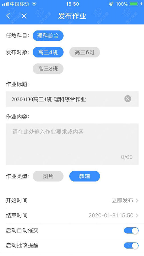關于如何發布、回收作業,不少學校采用的方式是,教師在網絡課堂中當堂發布作業,或者在課后于班級群中發布作業,學生完成作業后拍照,將作業內容以圖片的形式反饋老師。這種方法優點在于,老師作業的下發,與學生作業反饋簡便,缺點在于老師對于作業的搜集、整理、批改工作繁瑣。