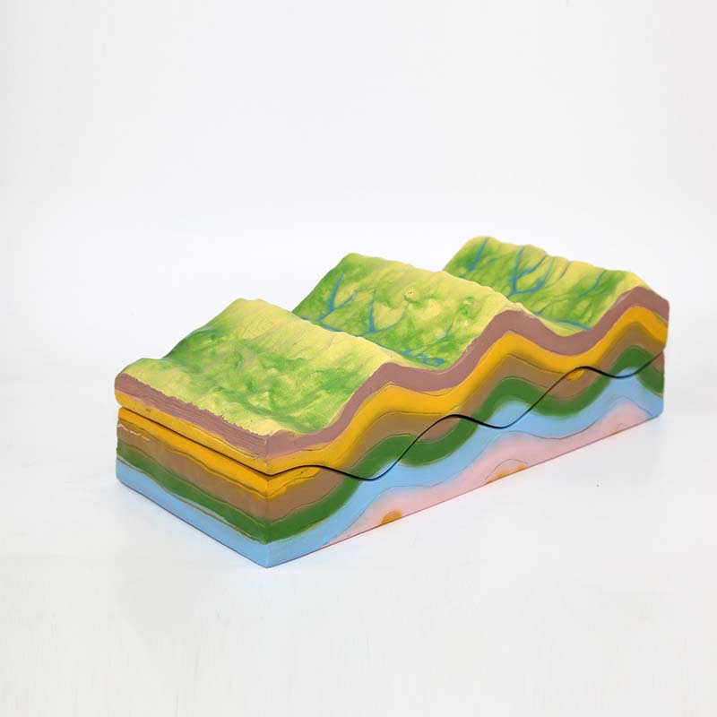 本模型直觀演示巖層在水平擠壓作用下形成的 背斜、向斜等褶皺構(gòu)造,以及后期在外力侵蝕、堆積作用下的地貌演變過程,清晰呈現(xiàn)背斜成谷、向斜成山等地貌倒置現(xiàn)象。結(jié)構(gòu)逼真、過程連貫,適用于中小學地理課堂教學與地質(zhì)科普,幫助學生理解褶皺構(gòu)造與地表形態(tài)的形成規(guī)律。