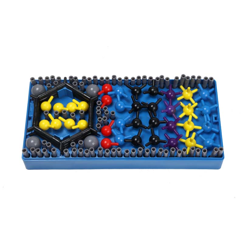 分子結構模型套裝包含多種顏色的原子球、化學鍵連桿及連接件,可自由組裝甲烷、乙烯、苯、乙醇、乙酸等常見有機與無機分子,也可搭建部分晶體結構。能直觀展示分子空間構型、鍵角與化學鍵連接方式,拆裝方便、演示清晰,適用于初高中化學課堂教學與學生自主探究實驗。