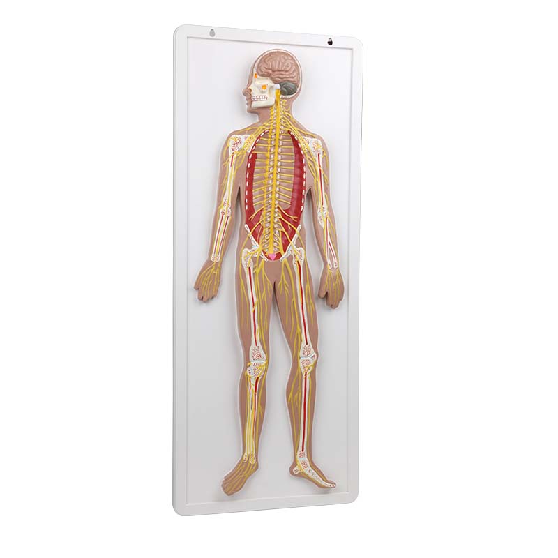 神經(jīng)系統(tǒng)模型板清晰展示人體中樞神經(jīng)與周圍神經(jīng)整體分布,直觀呈現(xiàn)大腦、脊髓、腦神經(jīng)、脊神經(jīng)及全身神經(jīng)走向。板面布局清晰、標(biāo)識(shí)完整,便于課堂教學(xué)與科普展示,幫助理解神經(jīng)系統(tǒng)的結(jié)構(gòu)與傳導(dǎo)功能。