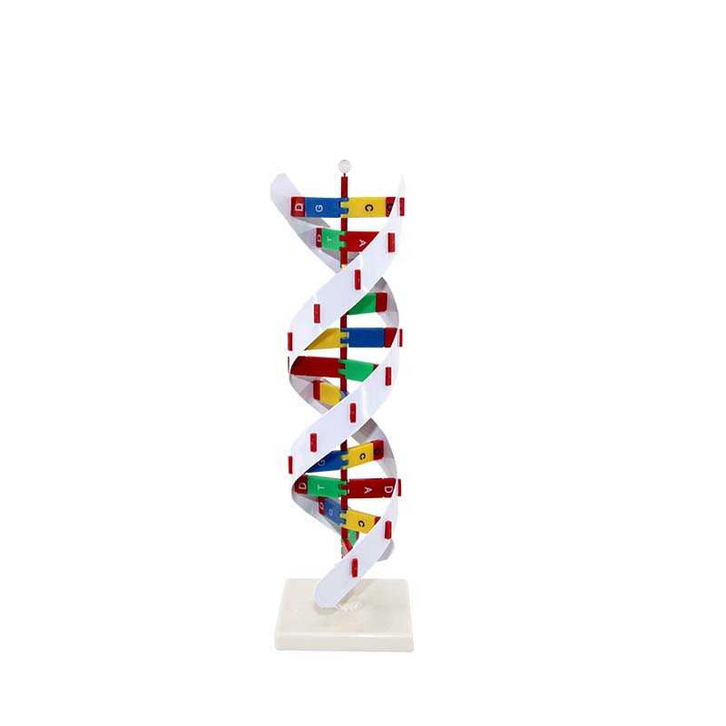 DNA 結構模型直觀展示 DNA 雙螺旋空間結構,清晰呈現磷酸、脫氧核糖、堿基對的組成與排列,體現 A-T、G-C 堿基互補配對原則。結構標準、組裝簡單,用于講解遺傳物質結構,適用于生物課堂教學與科學實驗演示。