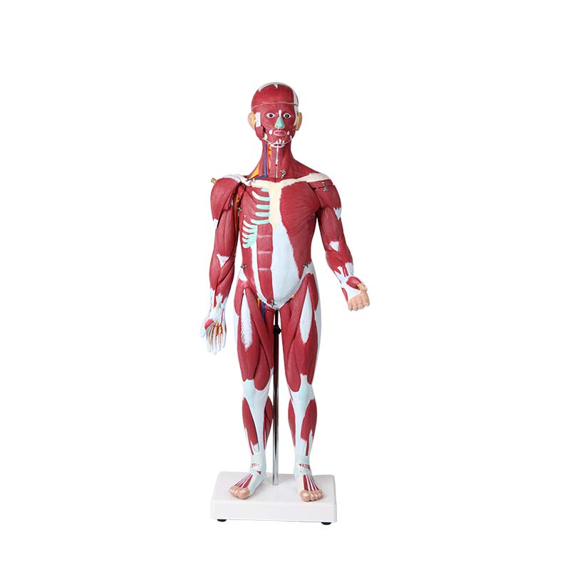 本款 85cm 高級版人體肌肉模型,精準還原人體全身主要淺層及部分深層肌肉結構,清晰標示各肌肉名稱、起止點與功能分區,比例協調、做工精細、標識清晰。適用于醫學院校、健身教學、康復理療及中小學生理健康教育,用于直觀學習人體肌肉分布與運動系統解剖知識。