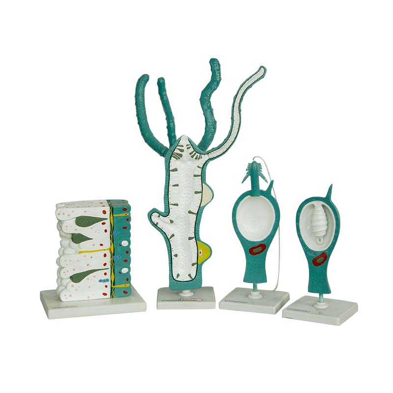 本模型清晰展示水螅的外部形態與內部解剖結構,包括觸手、口、消化循環腔、體壁、生殖結構及刺細胞分布等,直觀體現腔腸動物輻射對稱、兩胚層的典型特征,結構分明、標識清晰,適用于中小學生物課堂及動物學教學演示。