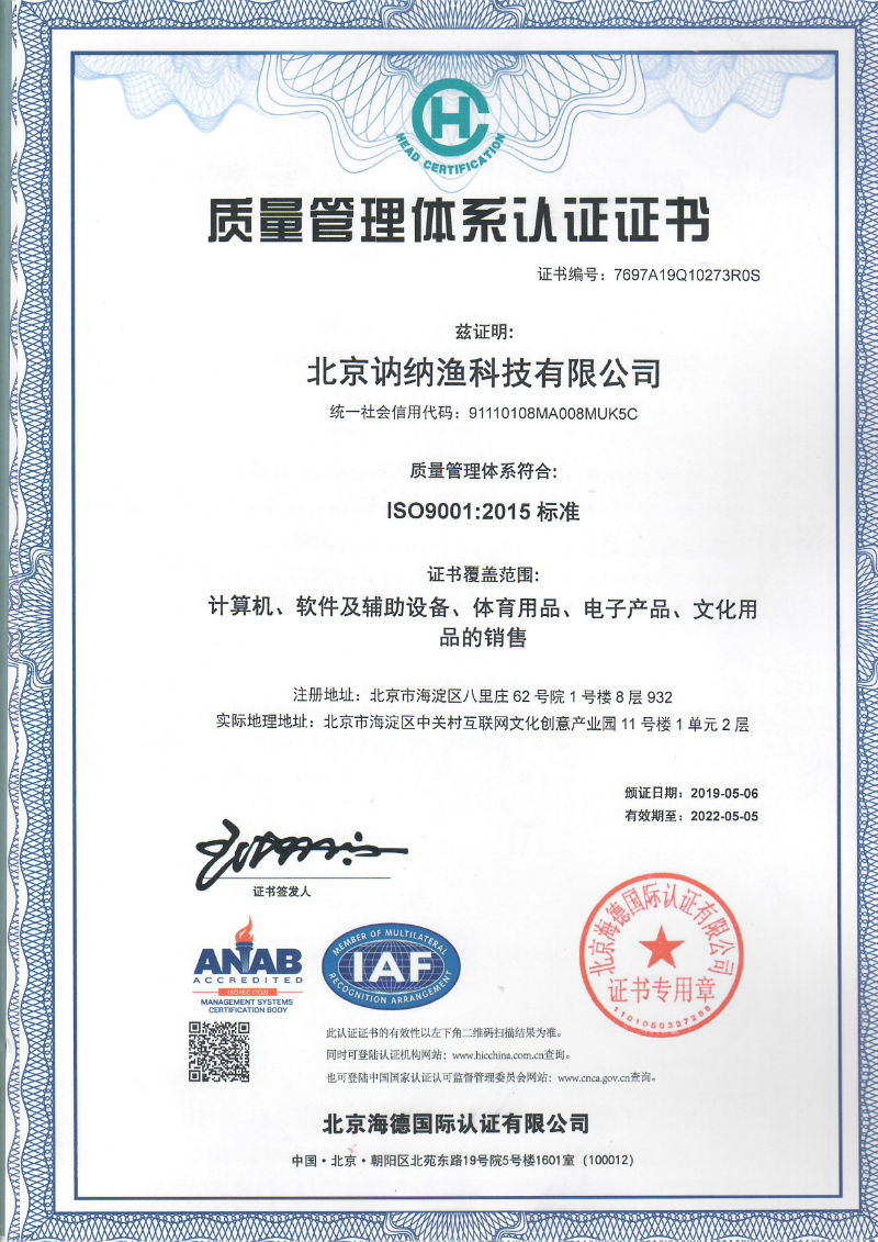 質(zhì)量管理體系認證證書